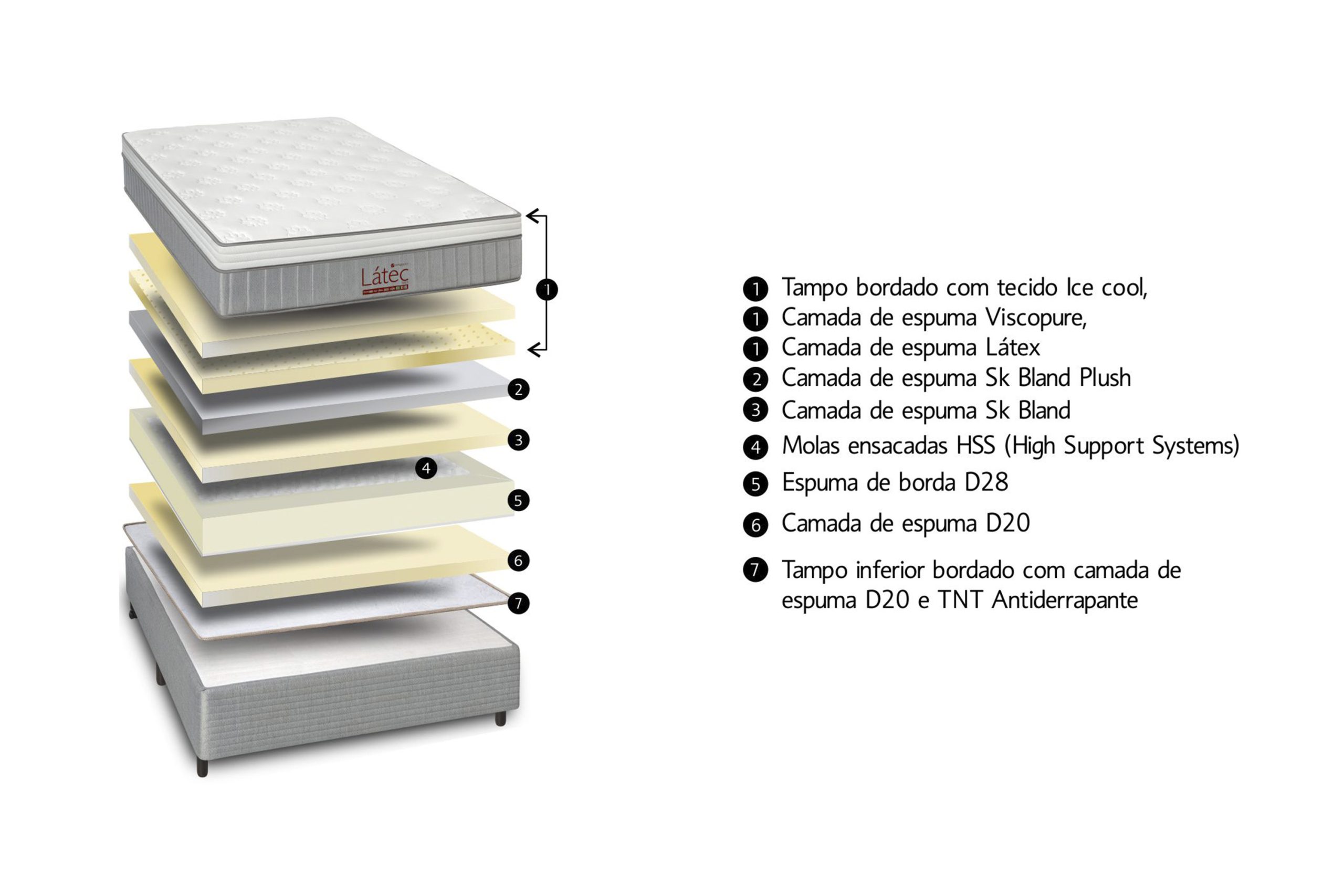 Camada de Látex: Oferece durabilida por ser uma material confortavel de alta resilência.