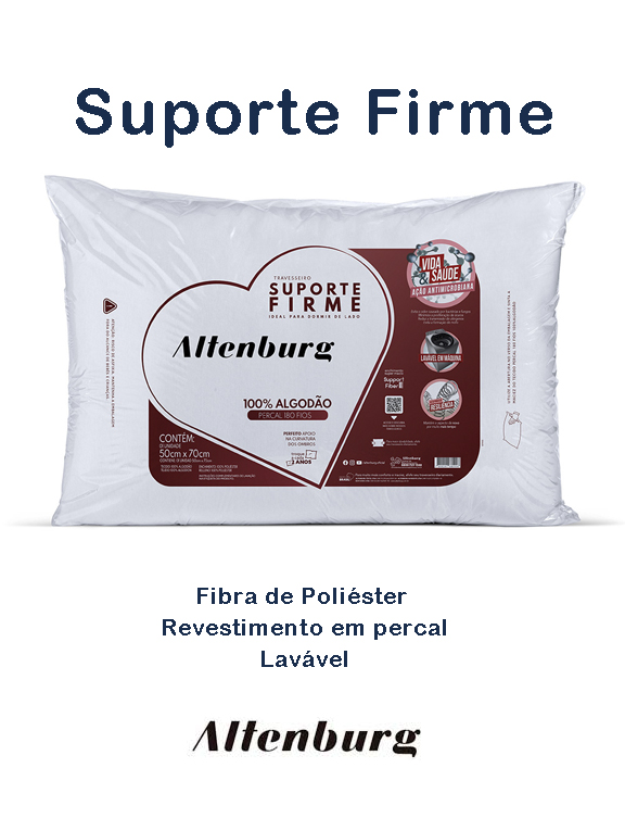 Com medidas padrão de 50 x 70 cm, o modelo se encaixa em fronhas comuns e harmoniza com qualquer enxoval. O travesseiro suporte firme Altenburg combina durabilidade, conforto e proteção, garantindo noites de sono mais tranquilas e saudáveis.