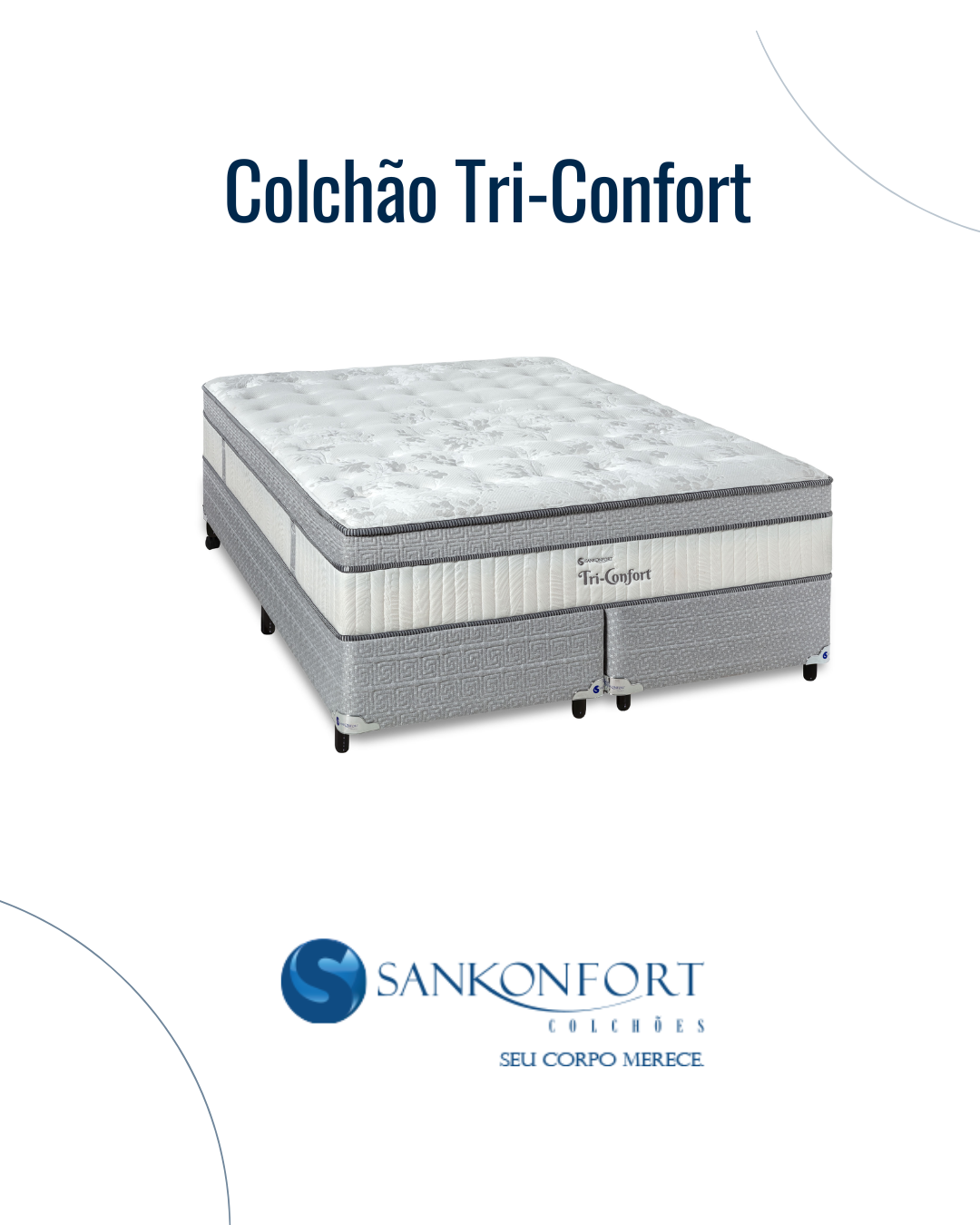 O Colchão Tri‑Confort da Sankonfort combina tecnologia de ponta com conforto extremo e suporte de peso. Projetado para suportar até 200 kg por pessoa, o colchão atende com excelência biotipos mais leves até os mais pesados. Tudo com um acabamento premium .